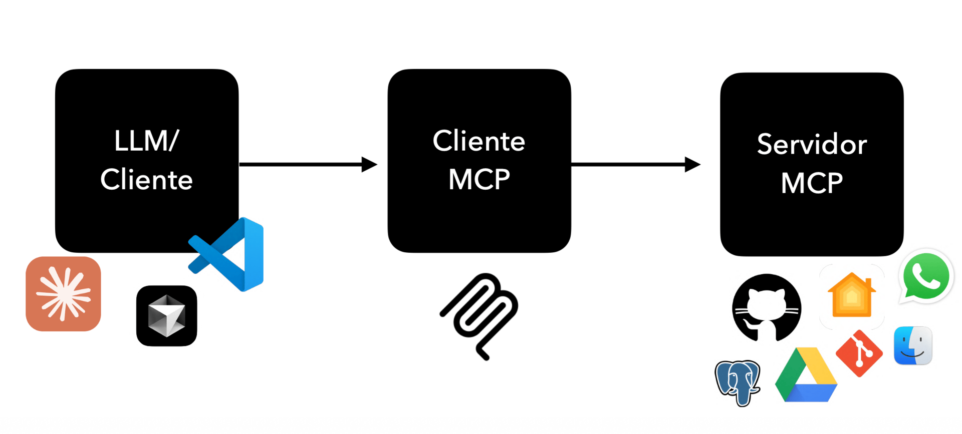 La tecnología que hay debajo de MCP es sorprendentemente sencilla y robusta. Y eso es bueno. La arquitectura se divide en tres piezas fundamentales que tenéis que tener claras: