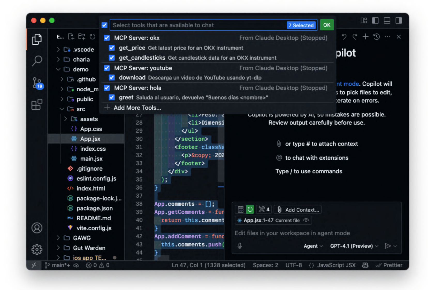 Lo bueno es que estos mismos MCPs que estás configurando para Claude también los tienes disponibles en VSCode: